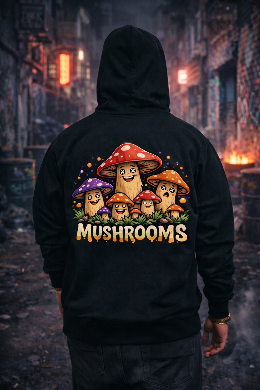 でも背中には、存在感のあるマッシュルーム達を